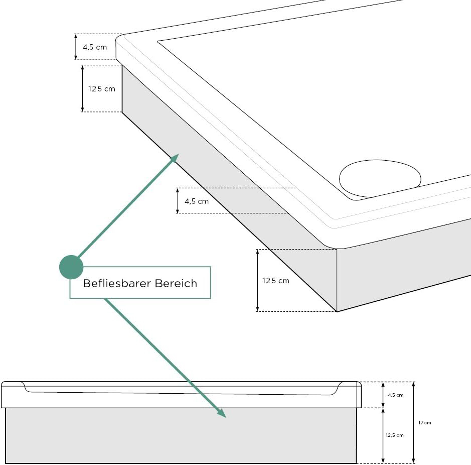 - Stabilität durch verstärkte Ränder: Die verstärkten Ränder der Duschwanne sorgen für erhöhte Stabilität und Langlebigkeit.