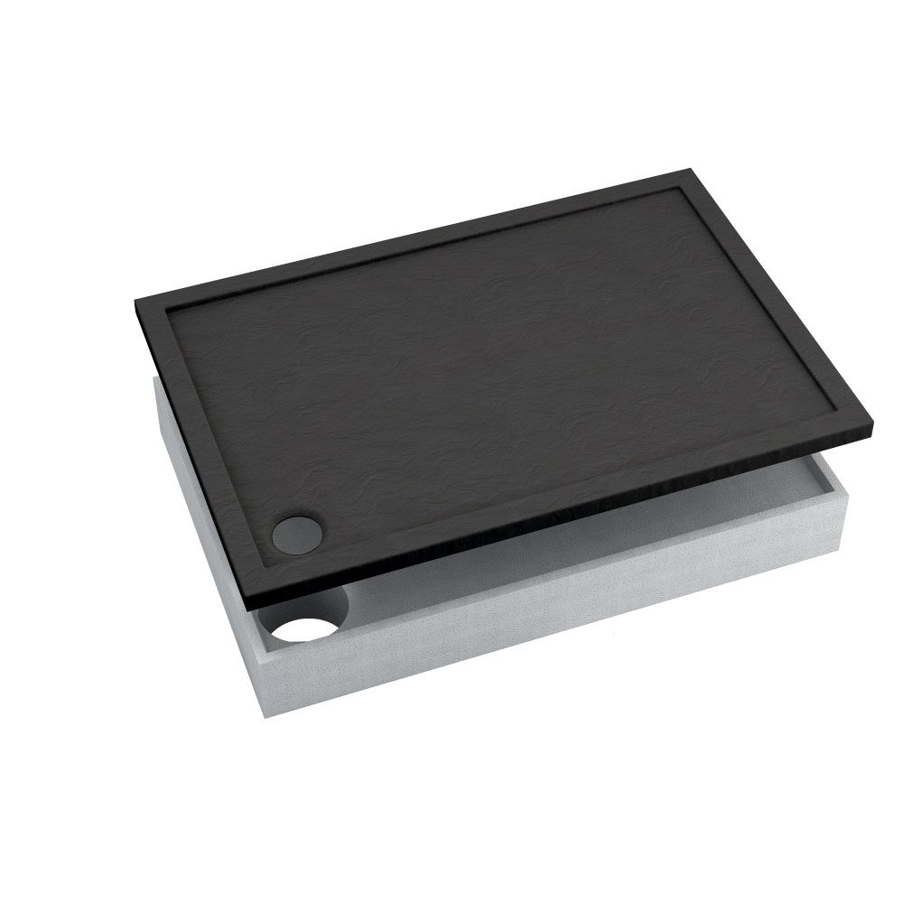 - Acryl mit Steinoberflächenstruktur: Die schwarze Steinoptik verleiht Ihrem Badezimmer einen modernen Stil.