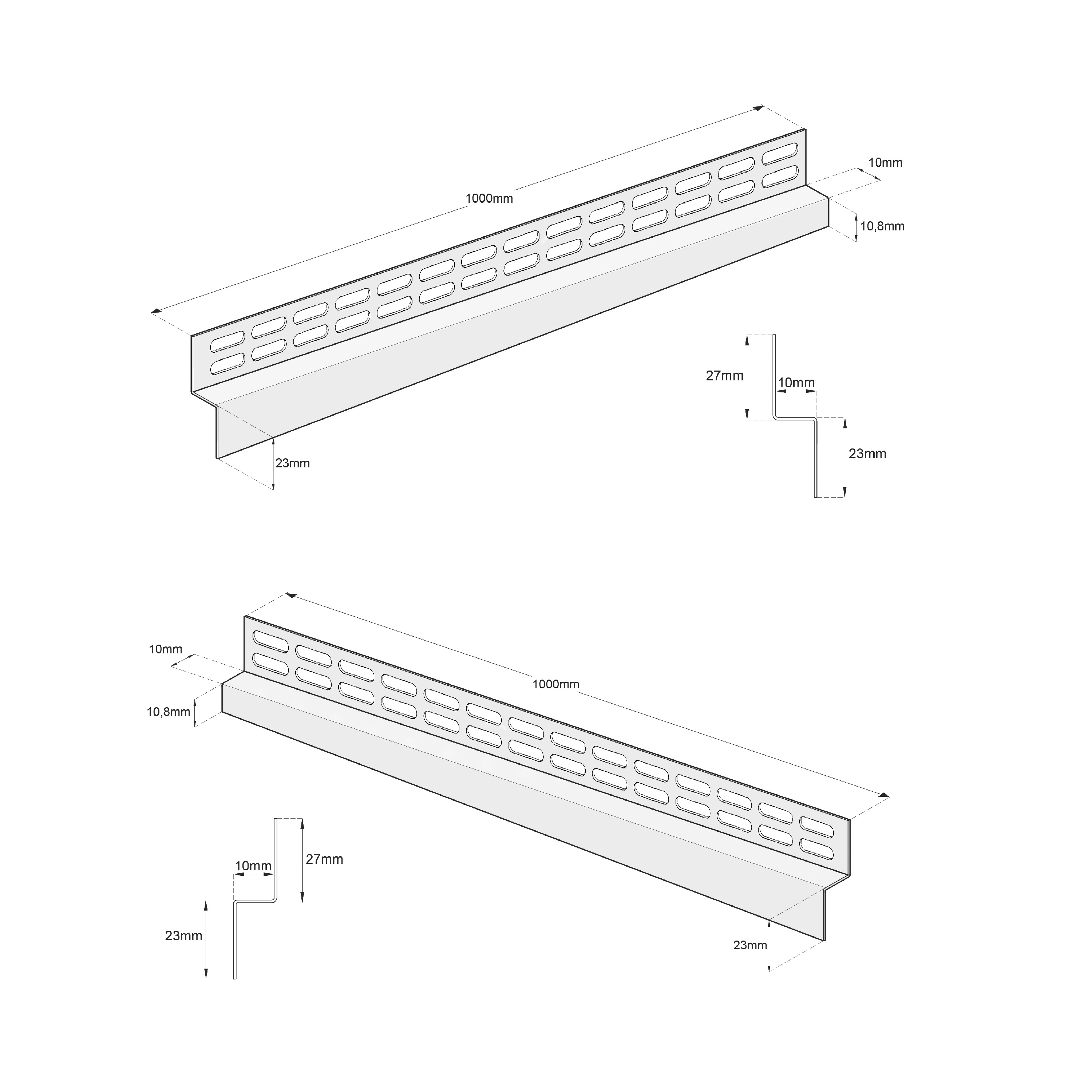 - Kantenhöhe: 10 mm für Fliesenstärke bis 8 mm, Länge: 100 cm, Höhe der Seitenfläche: 10,8 mm - 23 mm