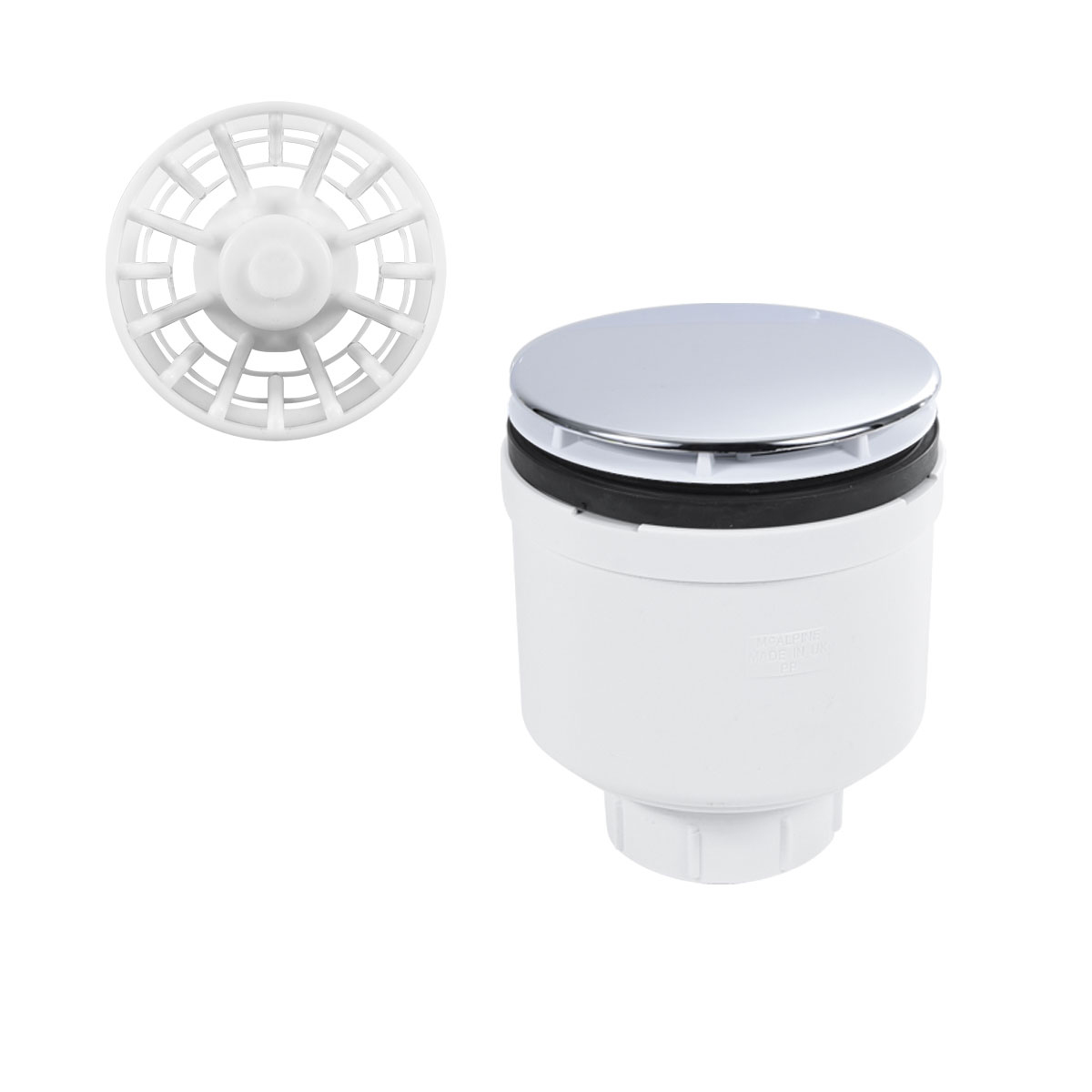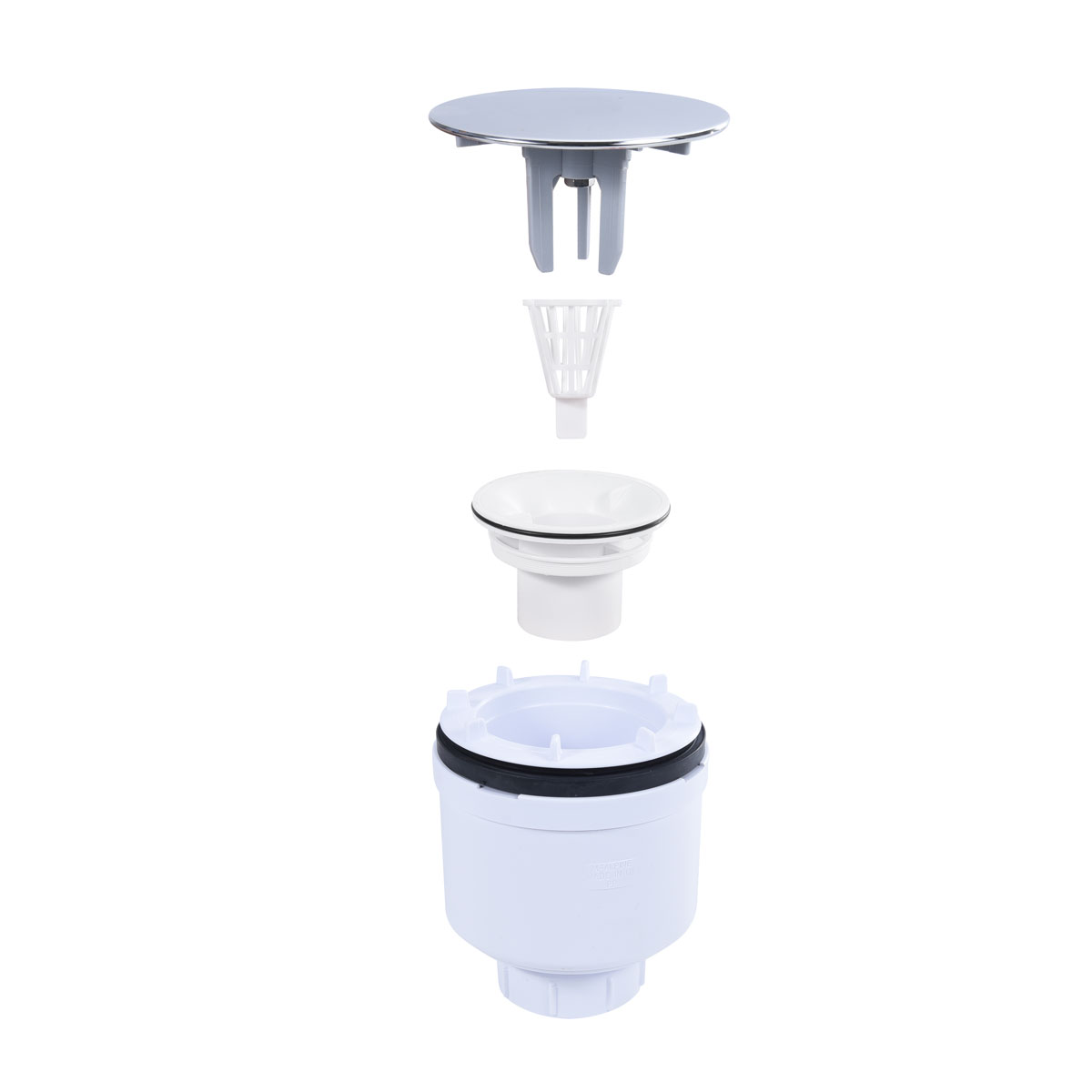 Im Lieferumfang enthalten: McAlpine ST9038 Siphon, Chrom-Abdeckung, Haarsieb.